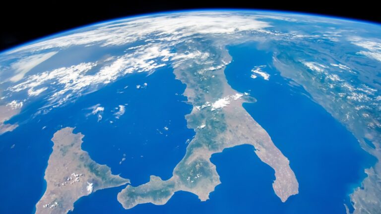 • areospazio e startup del sud, concept. Sud Italia visto dallo spazio