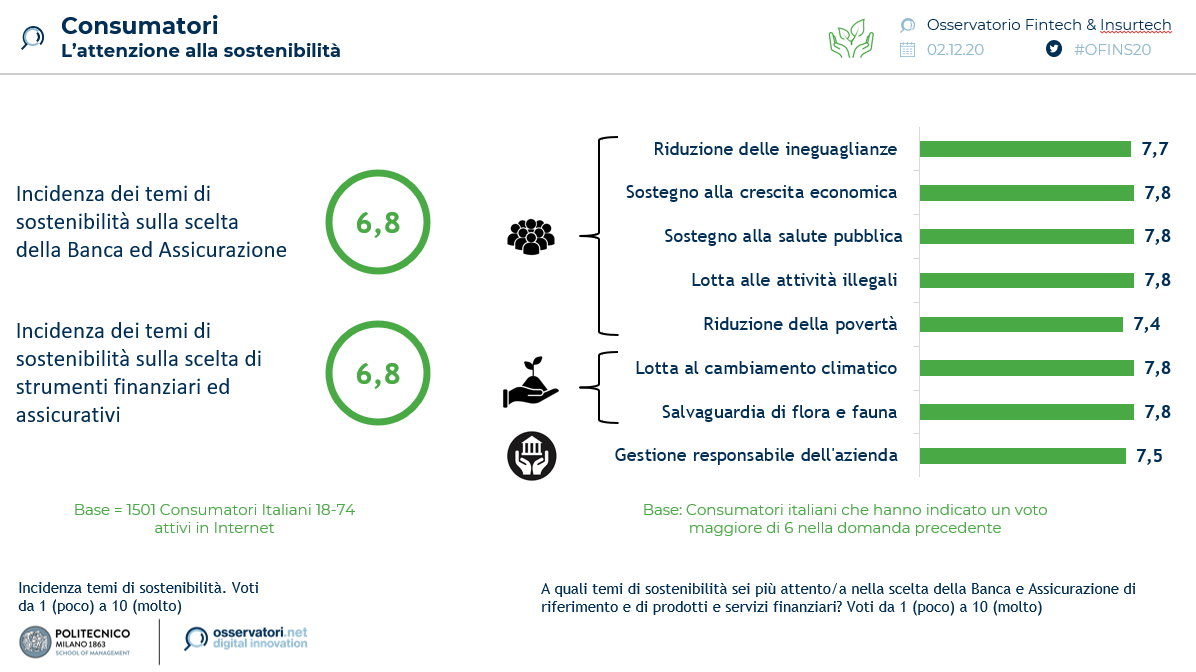“Nel 2021 si comprenderà meglio cosa significa sostenibilità nel finance” afferma Filippo Renga. Sappiamo che la sostenibilità è un trend emergente in vari settori, dal retail alla mobilità, seppure, in qualche caso, il termine sia usato più che altro con finalità di marketing. Non dovrà naturalmente essere così nel caso della finanza che vuole essere realmente e seriamente sostenibile. Anche perché sostenibilità non è un concetto legato soltanto all’ambiente, ma ha risvolti di tipo sociale ed economico. I consumatori italiani hanno già iniziato a prendere in considerazione fattori di sostenibilità nella scelta della banca o dell’assicurazione. Tra i temi più sentiti: lotta alle attività illegali, sostegno alla salute pubblica, lotta al cambiamento climatico. “Nel 2021 inizieremo a definire meglio alcuni aspetti della sostenibilità correlata al mondo finanziario, per capire così dove va a impattare e quali benefici può portare” prosegue l’esperto. “I livelli di adozione potranno essere interni o esterni all’azienda, di processo o di prodotto, aziendali o di sistema”. Inoltre “Lato offerta, a livello mondiale il 27% delle startup si dichiara attento ad almeno un SDG (Sustainable Development Goal, gli obiettivi di sviluppo sostenibile definiti dall’Organizzazione delle Nazioni Unite).