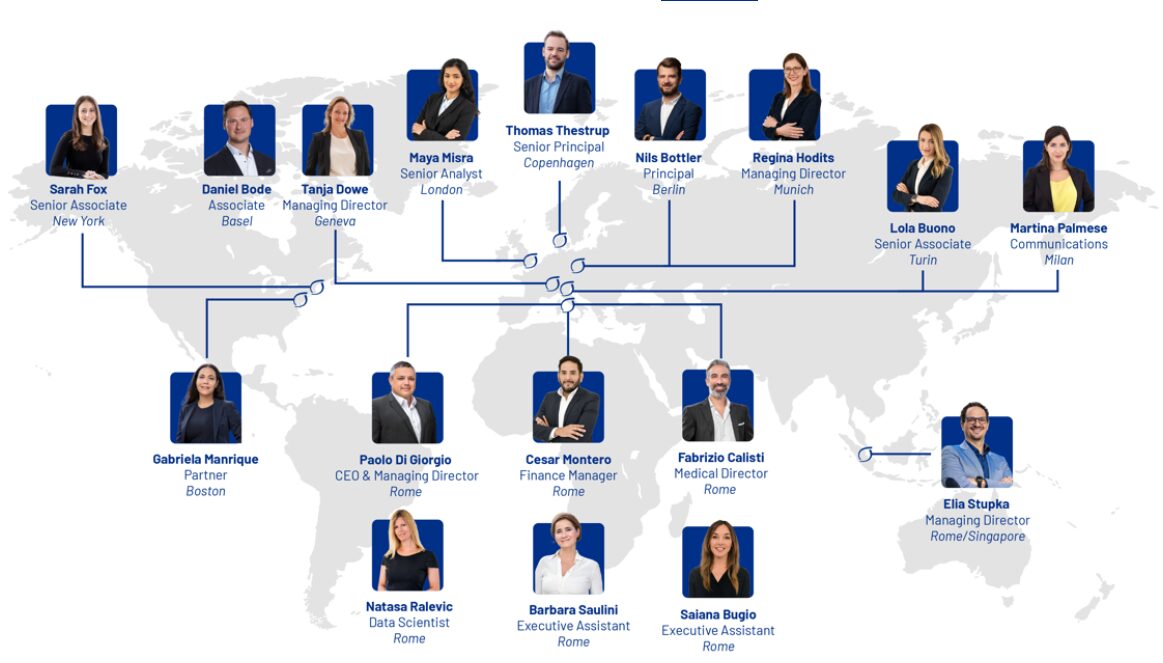 Angelini Ventures si distingue per un assetto organizzativo che permette di operare su scala globale. In Angelini Ventures ci sono infatti diversi managing director che, con competenze diverse, operano in alcune aree del mondo. Questo organigramma sintetizza bene l’assetto del fondo: