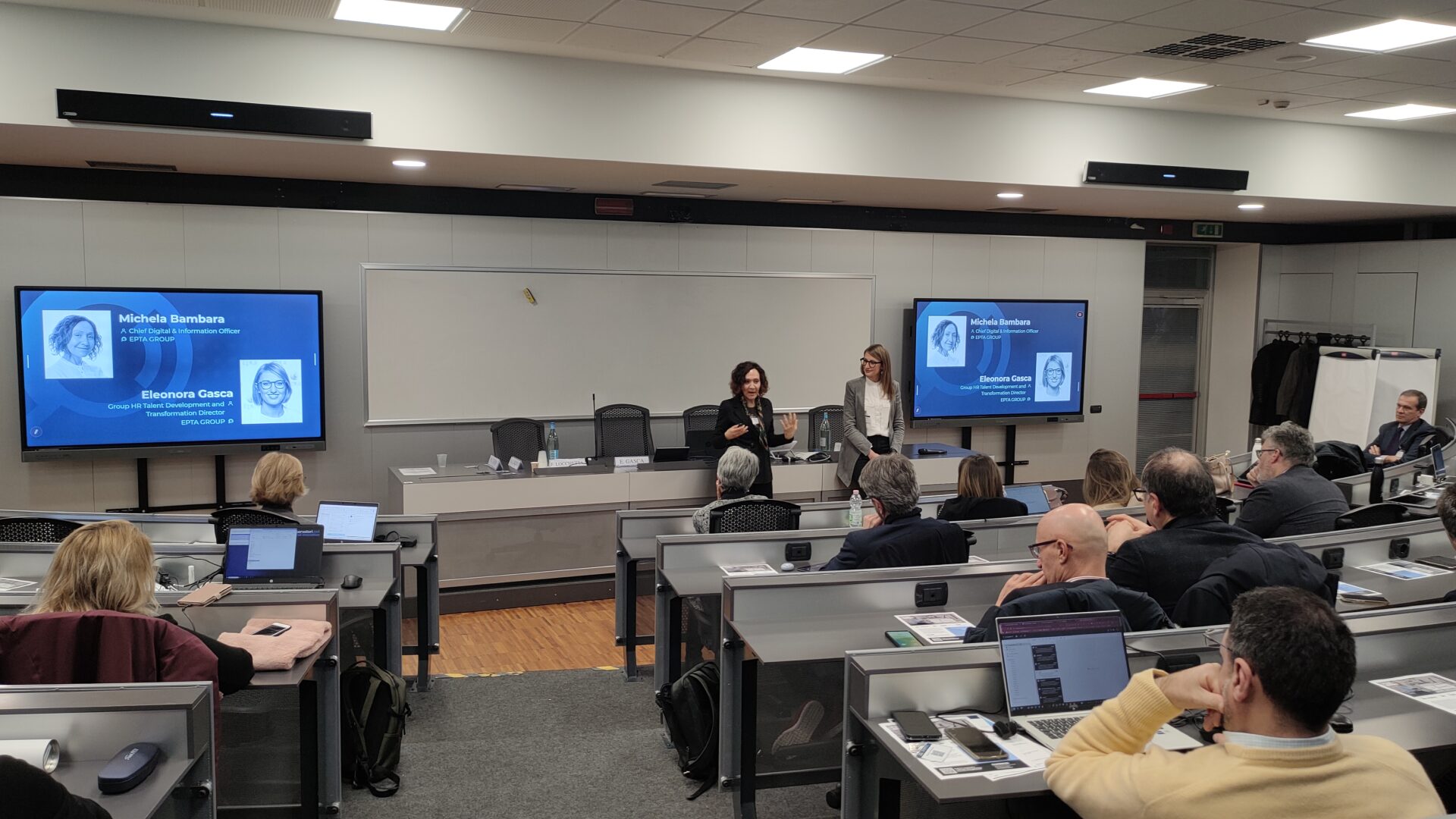 “Sono entrata in Epta con il ruolo di responsabile della trasformazione digitale, per utilizzare la leva digitale come opportunità di scalabilità e vantaggio competitivo. Da subito abbiamo affrontato la sfida come executive team, perché la digitalizzazione è cooperativa per definizione: non può essere gestita dalla sola Funzione Digital & IT, ma allo stesso tempo una guida trasversale è necessaria affinché non si disperda in silos all’interno dell’azienda. Con questo obiettivo ho lavorato per l’integrazione dei processi tra le varie Funzioni aziendali”, ha spiegato la CD&IO in occasione del Workshop della Digital Transformation Academy del Politecnico di Milano dal titolo “L’impatto dell’innovazione digitale e aperta per le imprese nel 2025”. (Sotto, un momento del convegno)