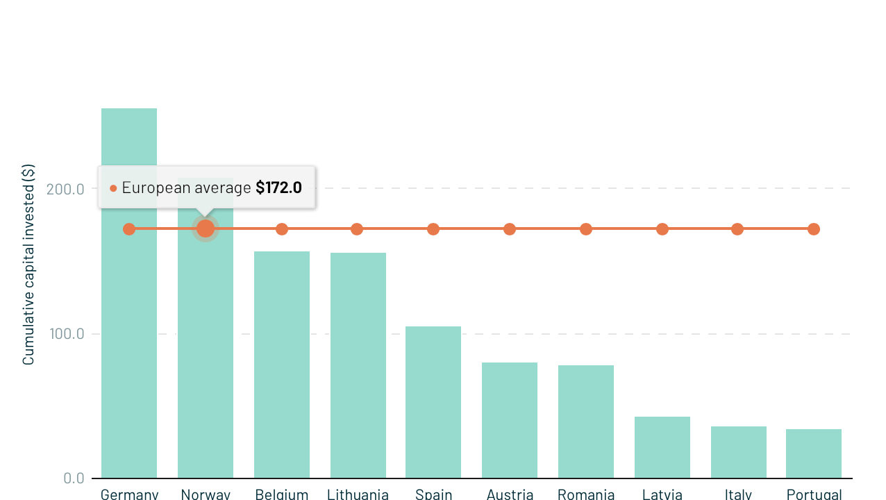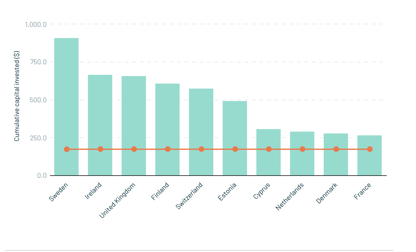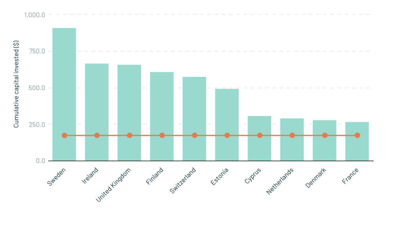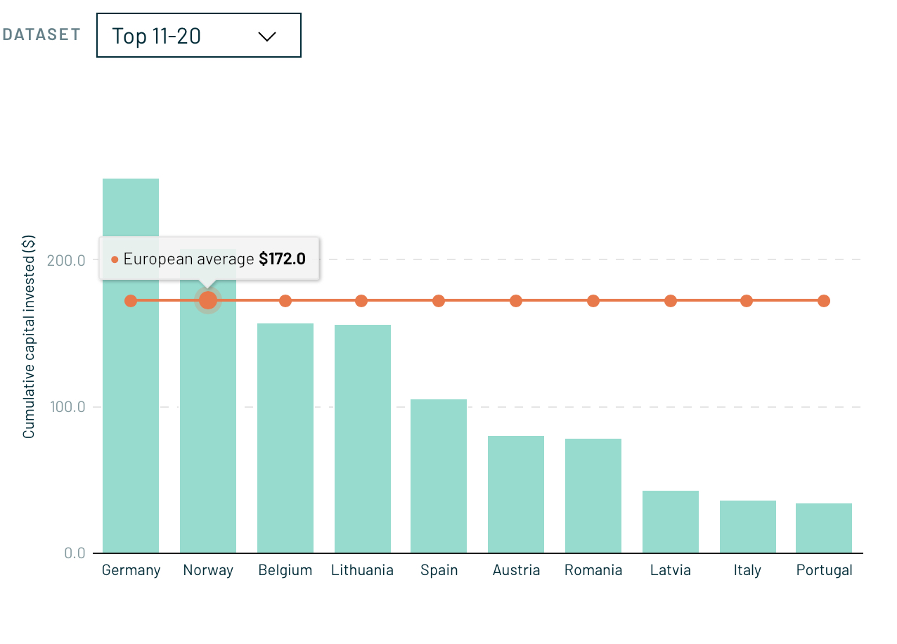 La debolezza dell’Europa è la sua disomogeneità, che si evince dai dati sugli investimenti procapite, che vedono primeggiare Paesi come Svezia, Irlanda o Finlandia con solo il Regno Unito al vertice. L’Italia si colloca al 19° posto, Paesi come L’Italia è al diciannovesimo posto, davanti solo al Portogallo, con 36 dollari investiti per cittadino rispetto alla media europea di 172.