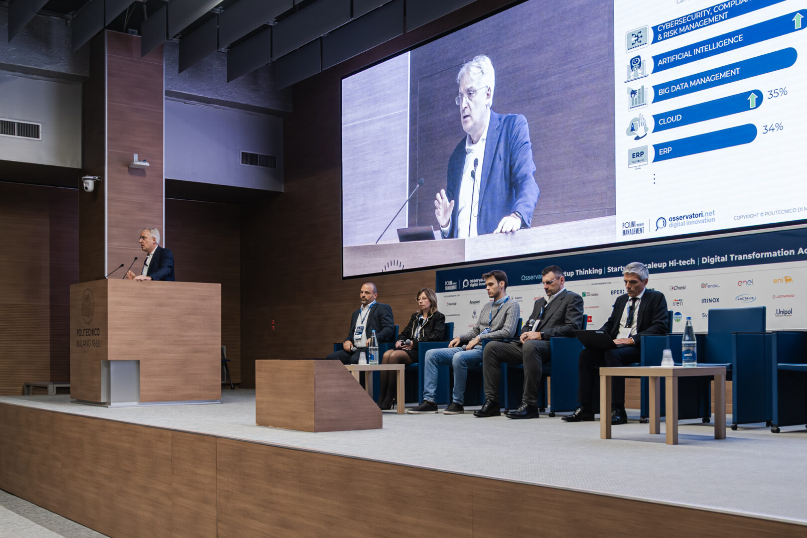 La tavola è stata aperta da Mariano Corso, Responsabile Scientifico dell’Osservatorio Digital Transformation Academy e Full Professor del Politecnico di Milano, che ha sintetizzato i risultati delle ricerche degli Osservatori, e co-moderata da Stefano Mainetti, Responsabile Scientifico dell’Osservatorio Startup Thinking. (nella foto un momento del convegno)