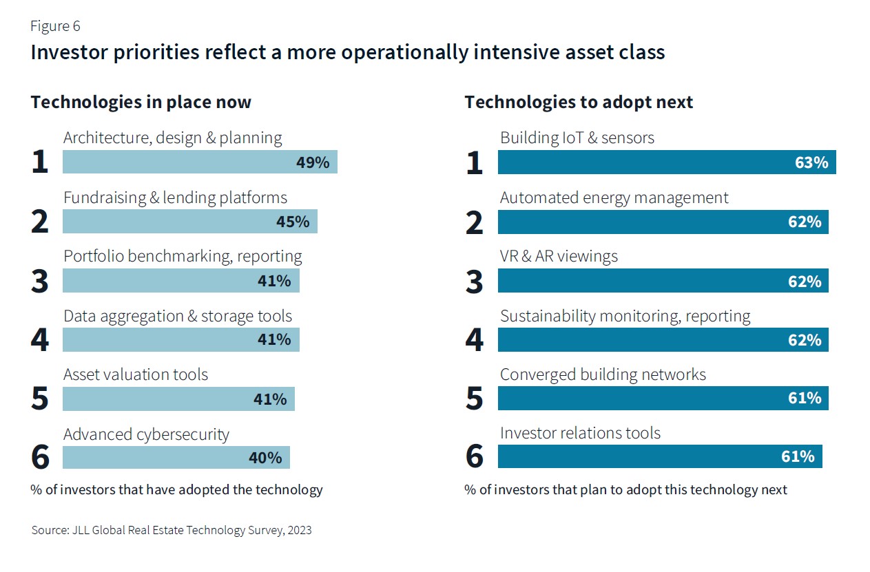 L’analisi, che ha coinvolto più di 1000 responsabili real estate di oltre 600 aziende e di 400 investitori/sviluppatori e grandi proprietari, delinea bene come gli investimenti dedicati al proptech crescano più rapidamente dei budget operativo e di quello destinato al personale. Nello specifico, la ricerca su real estate e tecnologia ha preso in esame 350 soggetti nelle Americhe, 421 nell’area Emea e 353 nell’area Asia Pacifico (qui si può scaricare il report completo)