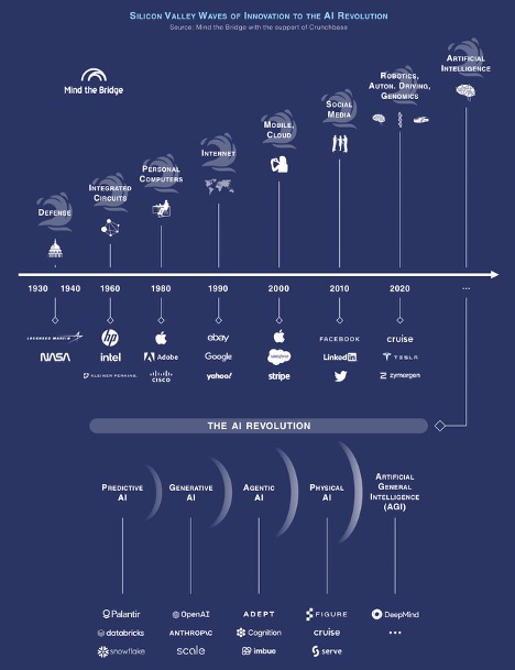 Ancora una volta, la Silicon Valley si conferma come l’epicentro indiscusso dell’innovazione globale. Nel corso dell’ultimo secolo, a partire dai primi investimenti legati alla difesa negli anni Trenta e Quaranta, la Silicon Valley è stata difatti la culla di alcune delle più rivoluzionarie trasformazioni tecnologiche al mondo che hanno trasformato l’economia globale: dai circuiti integrati e i personal computer fino a internet, al mobile, al cloud computing e ai social media.