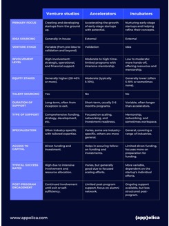 Gli startup studio si distinguono da incubatori, acceleratori o fondi di venture capital tradizionali anche per risultati nettamente migliori, sia in termini di ritorno economico che di velocità e tassi di successo.