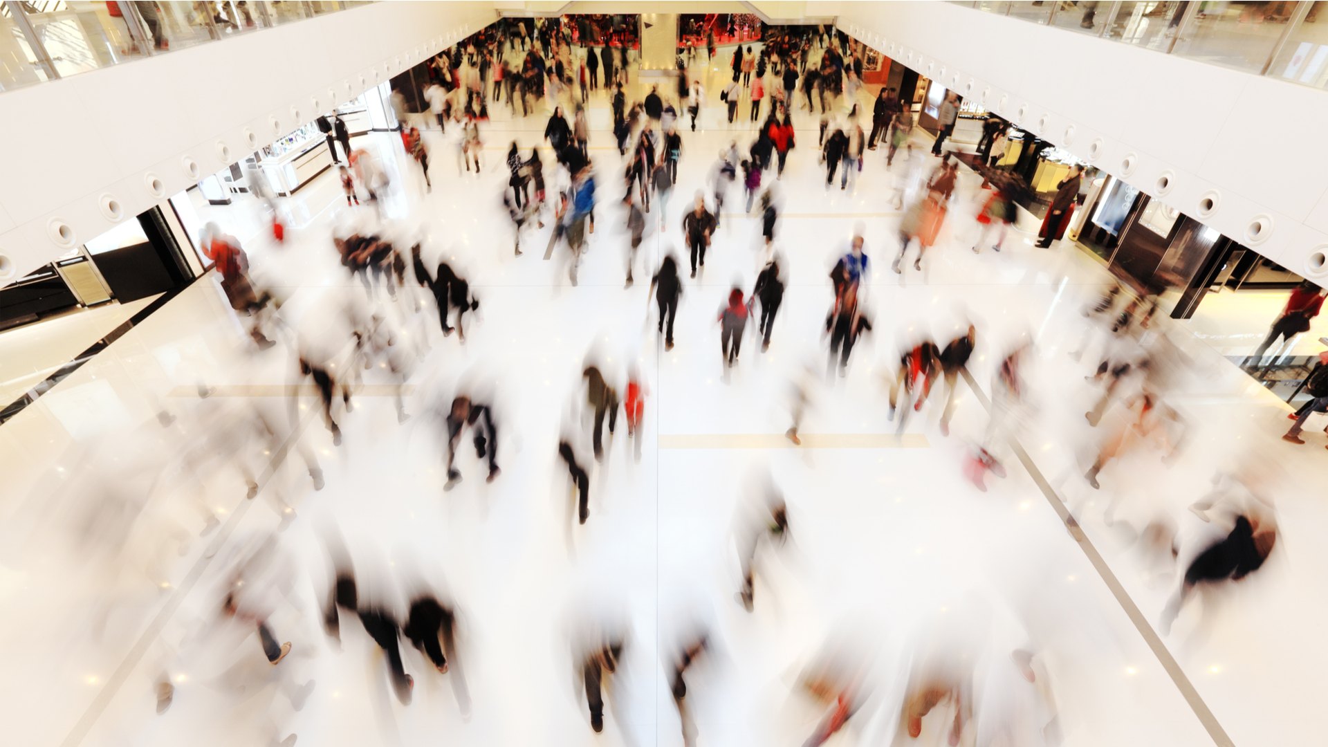 • Blockchain: immagine sfocata di persone in un centro commerciale